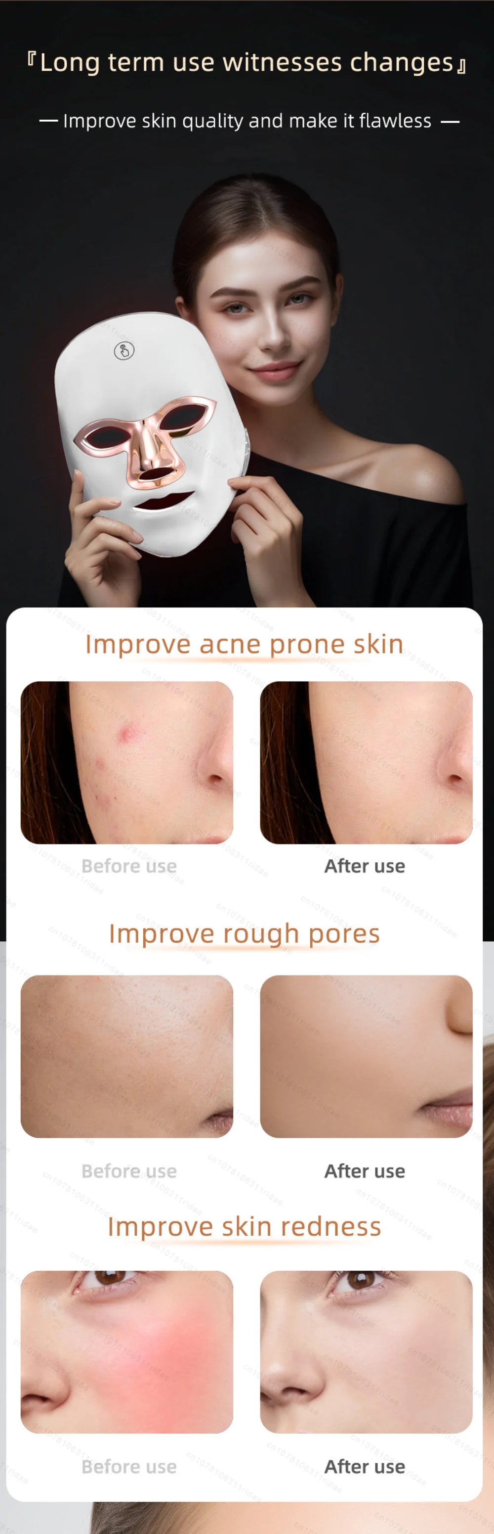 Mascarilla Facial Led de 7 colores con cuello, mascarilla de terapia de luz